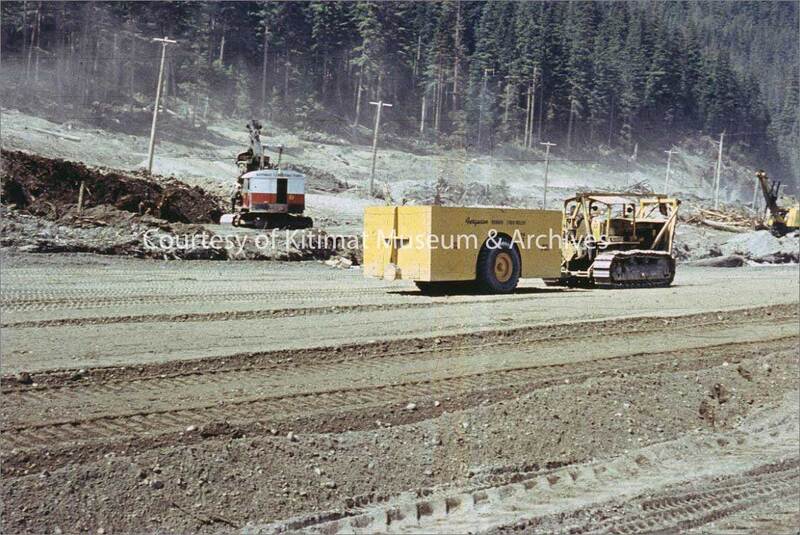 - Ferguson rubber-tired roller compacting the fill area, rolling fill & stripping at smeltersite. Kitimat BC.