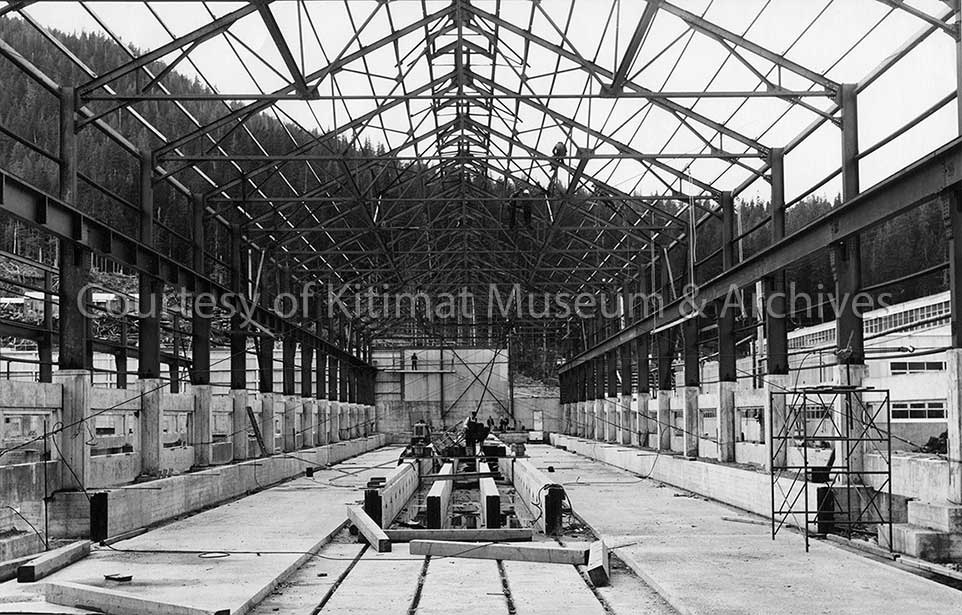 Looking west in Pot Room 20, showing structural steel erected and plumed.