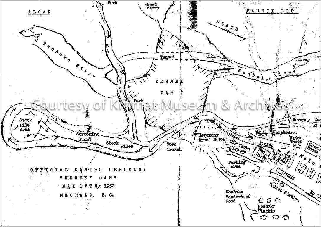 - Kenney Dam Naming Ceremony program map with camp shown.